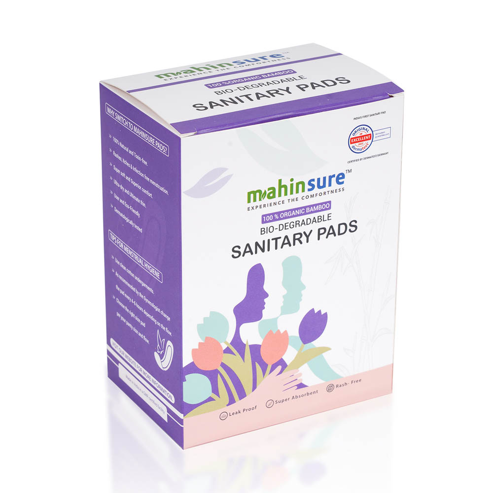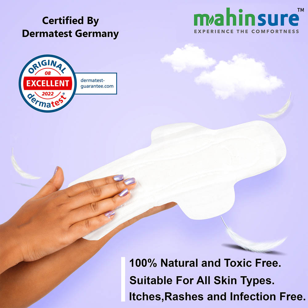 - Certification – The mahinsure bamboo fibre sanitary pads are dermatologically tested (Suitable for all skin types). Mahinsure is India’s first sanitary pad certified by Dermatest, Germany.